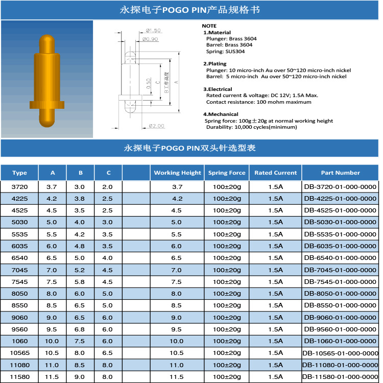 廠家非標(biāo)定 制鍍金黃銅觸針pogopin 彈簧針 大電流針頂針連接器